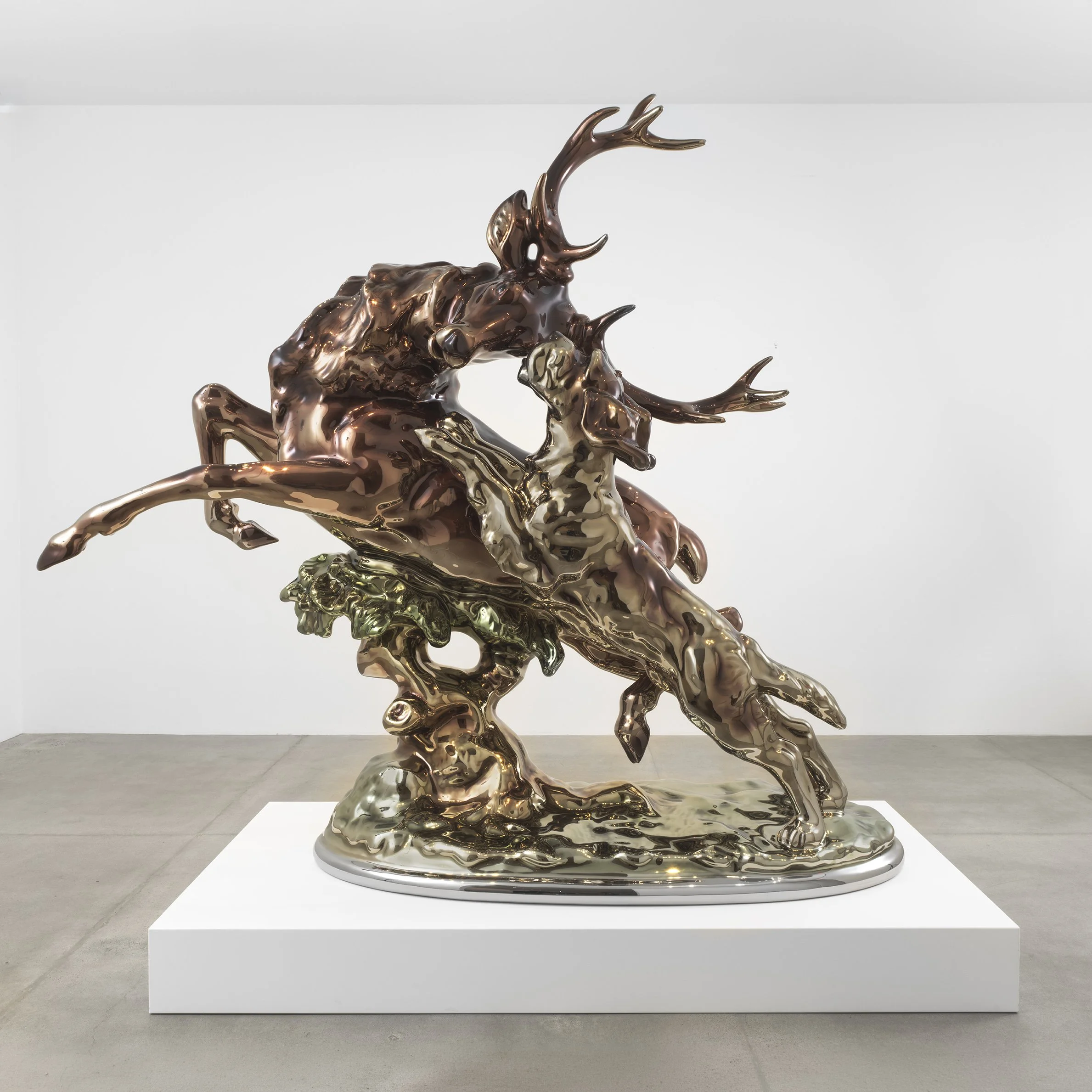 A series of monumental mirror-polished stainless-steel sculptures finished using layered transparent automotive paint systems.